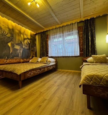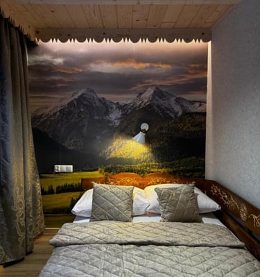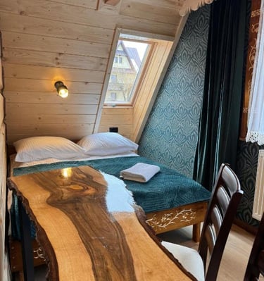Wnętrza urządzone są w tradycyjnym, regionalnym stylu – z wykorzystaniem naturalnego drewna i podhalańskich zdobień, co sprawia, że oferowane noclegi Zakopane zapewniają wyjątkową atmosferę i pełen komfort wypoczynku. Do dyspozycji gości są przytulne pokoje oraz przestronne apartamenty, idealne dla par, rodzin z dziećmi i grup przyjaciół.